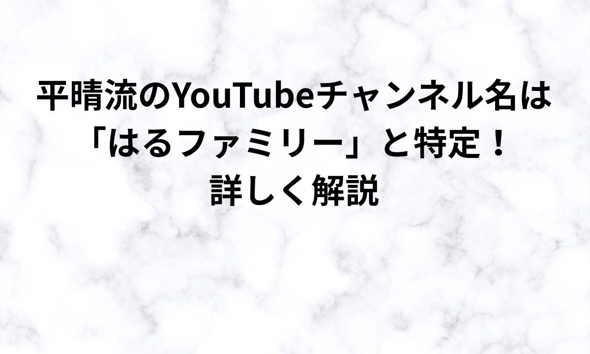 平晴流が、youtubeファミリー系を発信していたことがわかりました。